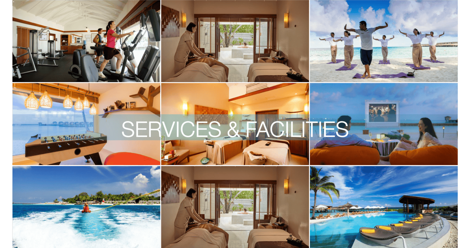 วิลลาโปร่งสบายและสว่างไสวด้วยพื้นไม้และผ้าธรรมชาติ มอบทัศนียภาพอันน่าตื่นตาของมหาสมุทรอินเดียพร้อมที่พักริมชายหาดหรือที่พักเหนือน้ำให้คุณเลือก สถานที่ดื่มและรับประทานอาหารอย่างมีสไตล์มีให้บริการถึง 7 แห่ง ตั้งแต่อาหารไทยไปจนถึงอาหารอิตาเลียน พร้อมเสิร์ฟอาหารรสเลิศ ทั้งยังมีสระว่ายน้ำ 2 สระ สปาริมทะเล และอื่นๆ อีกมากมาย ที่ช่วยเติมเต็มสิ่งอำนวยความสะดวกอันน่าดึงดูดใจของรีสอร์ท